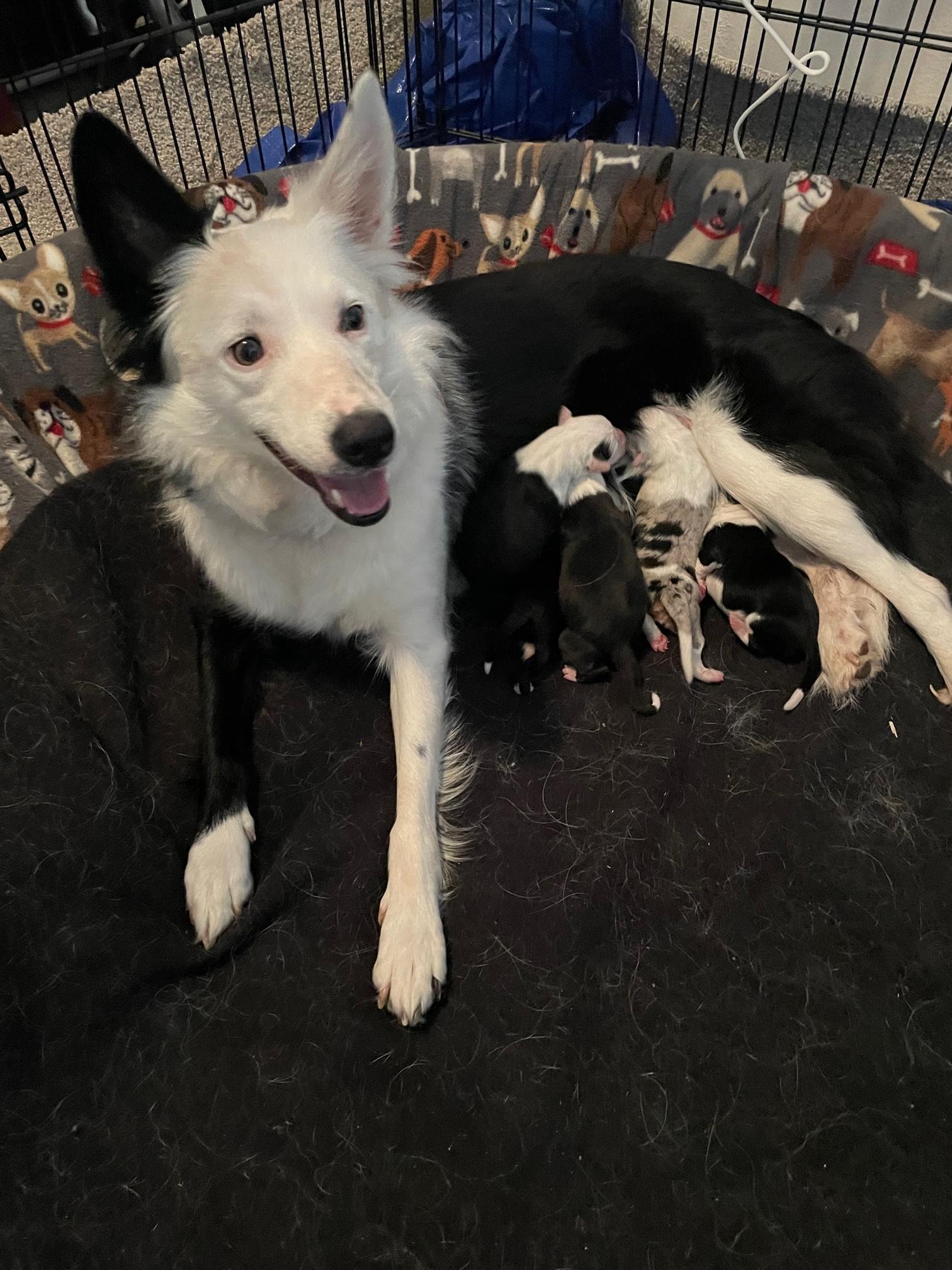 I'm Bob & Donette B., the breeder behind Bob & Donette's Border Collies located in Colorado Springs, CO. We adore our dogs! Both parents are AKC registered and have been DNA tested. They are registered on the OFA database. Both parents are from working lines. Fractal is a working farm/ranch boy and Keesha is in herding and agility training. All puppies will be able to be AKC registered and will be co-owned. Puppies are already microchipped and will be up to date on vaccinations.
