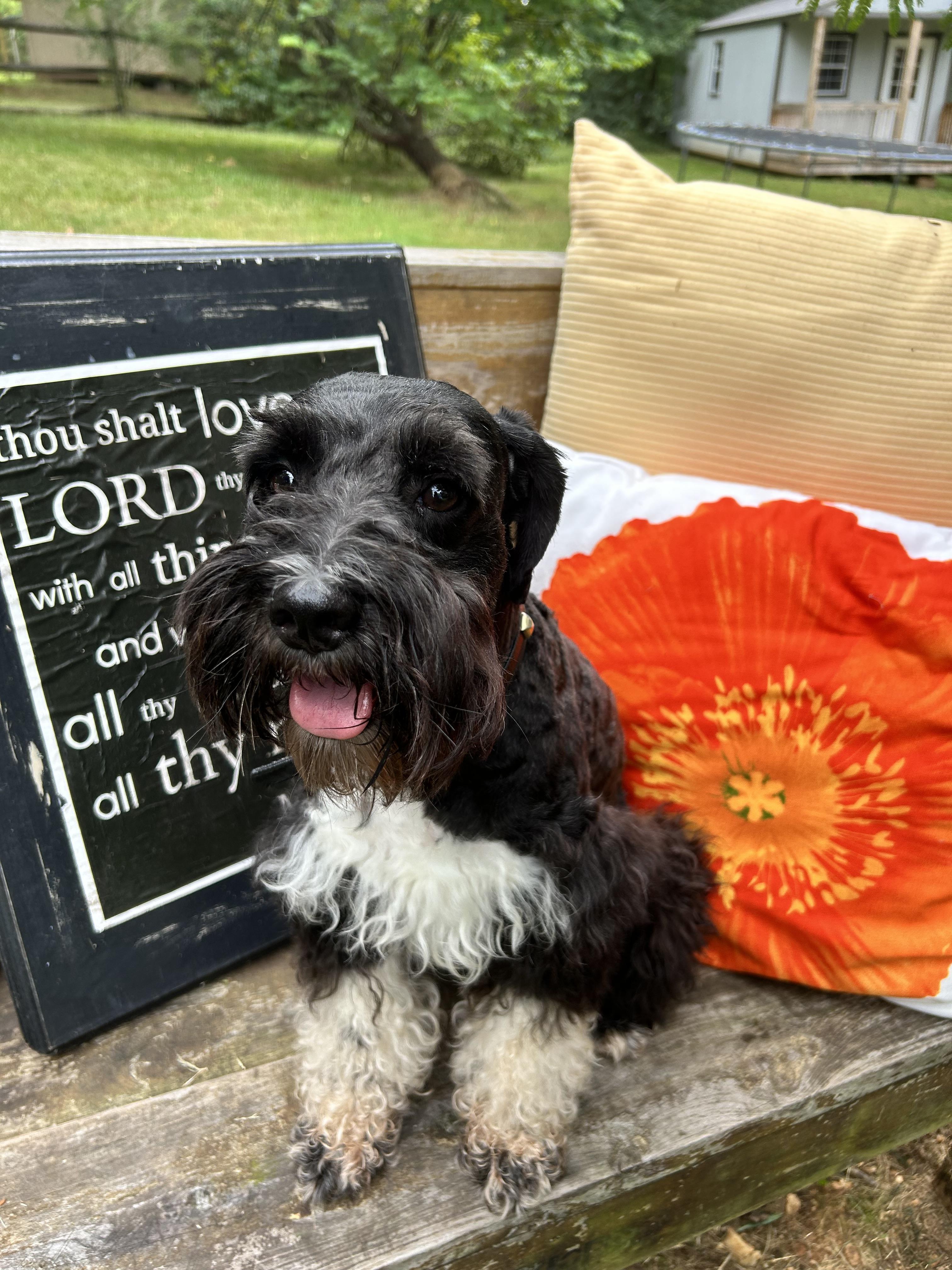 Girl is a female Miniature Schnauzer. Carefully selected as a great representative of her breed, Orie decided to make her part of their program. Orie has passed Good Dog’s screening process, which involved a review of their breeding practices, environment, and the mental and physical health of their dogs.