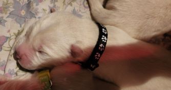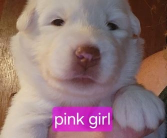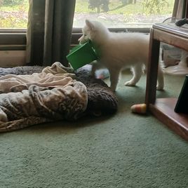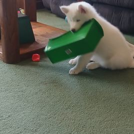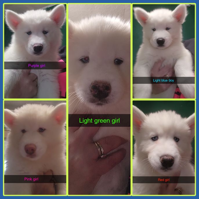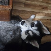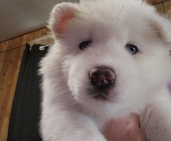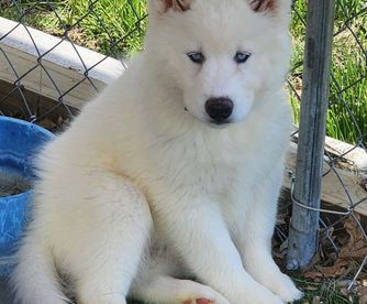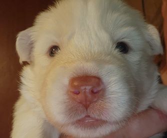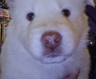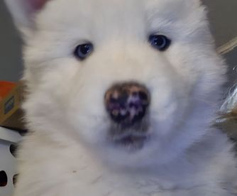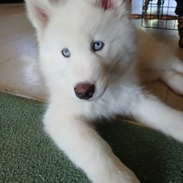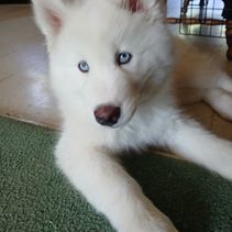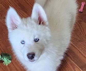 Olaf came to us healthy, happy and very well cared for. We were looking for a male husky puppy when we seen Michelle's puppies, bonus all white one, his parents are very beautiful dogs. Michelle stayed in contact with us through the whole process and has after. Michelle and her husband are good people and care for the dogs and puppies very much and it shows. Olaf is a smart little guy with a giant personality. If you are looking for a healthy, happy, well taken care of puppy, look no further the Michelle and her puppies.