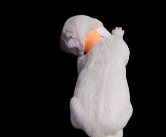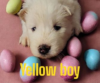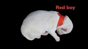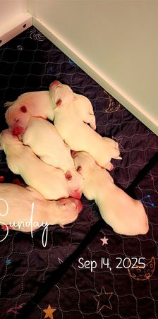 Our puppies include red and white, black and white, and white. Colors will vary depending on the parent dogs.