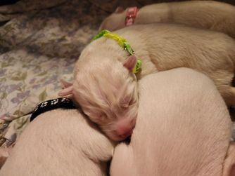 All the babies moved to their own big room, eating hard food and drinking out of a water bowl now learning how to go potty on the puppy pads and growing like crazy
