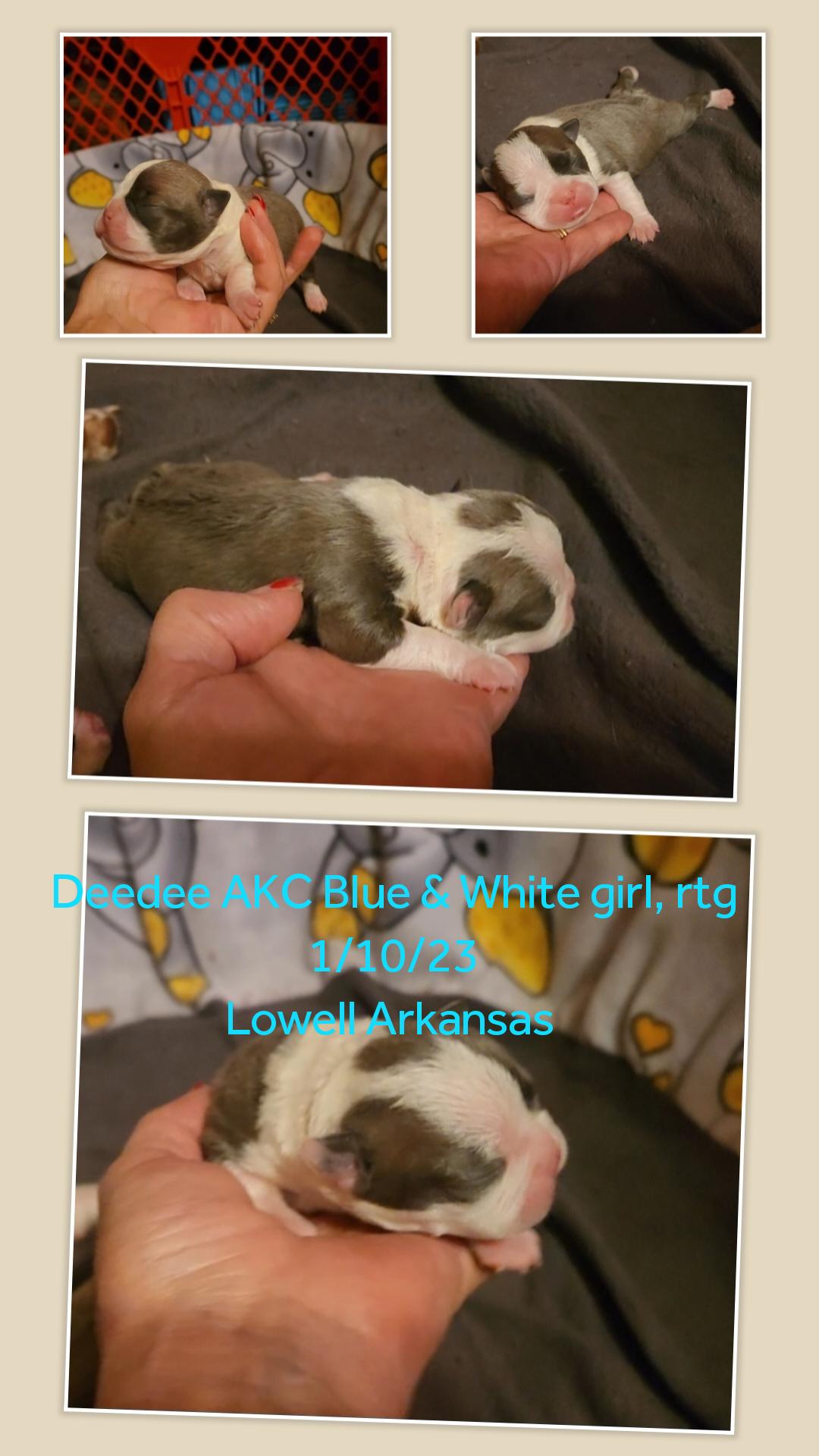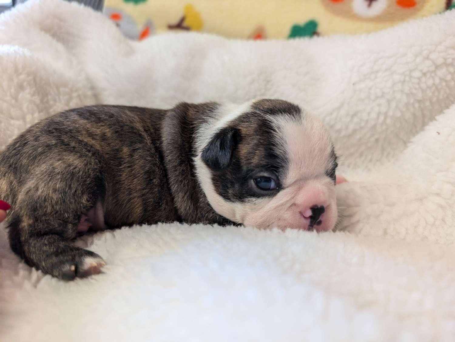 Our puppies include black brindle and white and black and white. Colors will vary depending on the parent dogs.