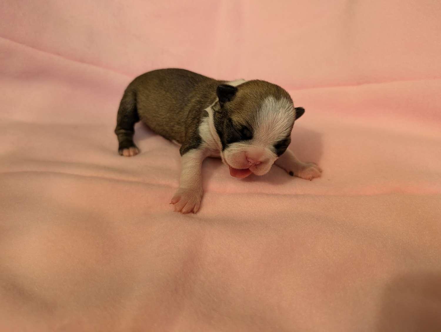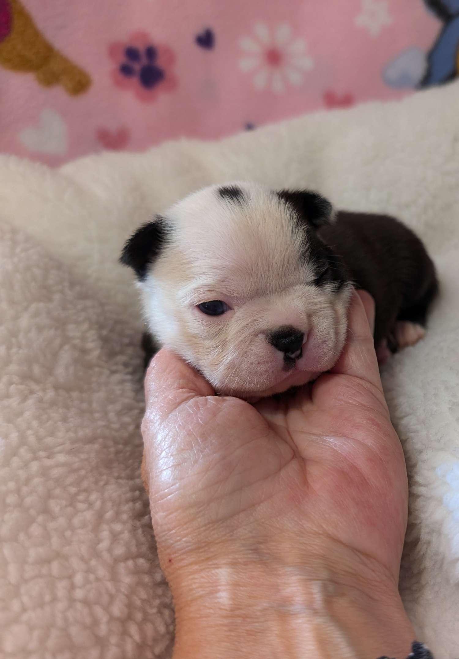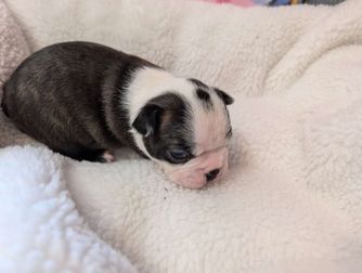 It was very nice to meet Kimmie. I thought it was so special that she took videos every day. I got to watch the whole litter grow, play & develope. I even got to meet her "crew", all very sociable bostons. My pup Leah was litter trained and now working on ringing bells to go potty outside. She has been extremely respectable with my older boston & frenchie. Amazing for a puppy. I am so grateful to have found Bogan's Bostons. I am delighted with my pup now call Xiara Leah.