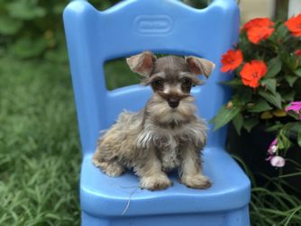 Monroe is a female Miniature Schnauzer. Carefully selected as a great representative of her breed, Emily decided to make her part of their program. Emily has passed Good Dog’s screening process, which involved a review of their breeding practices, environment, and the mental and physical health of their dogs.