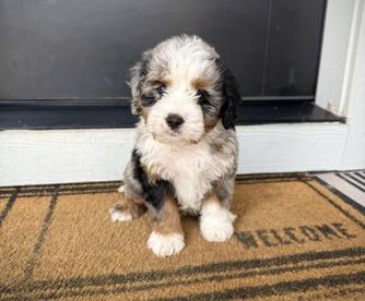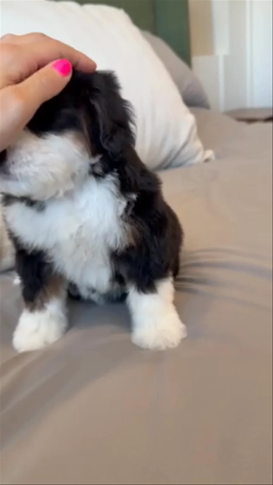 Poppi is a mini Bernese. She has the sweetest temperament and is 28lbs