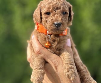 Scarlett is a female Goldendoodle. Carefully selected as a great representative of her breed, Viorica decided to make her part of their program. Viorica has passed Good Dog’s screening process, which involved a review of their breeding practices, environment, and the mental and physical health of their dogs.