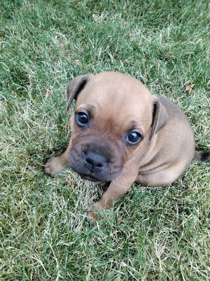 Mags is a female Staffordshire Bull Terrier. Carefully selected as a great representative of her breed, Mona decided to make her part of their program. Mona has passed Good Dog’s screening process, which involved a review of their breeding practices, environment, and the mental and physical health of their dogs.