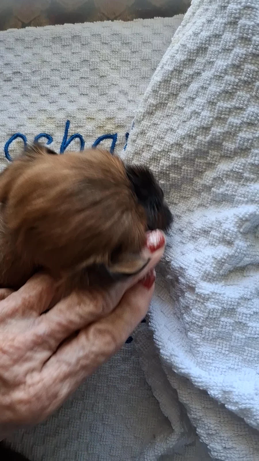 Three weeks old today and not impressed with clean bedding.