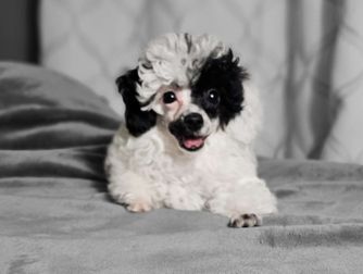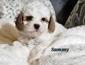 Our Cavapoo puppies include red and apricot. Cockapoo puppies include buff, buff and white, brown and white, black white and tan, brown, black and tan, and black. Poodle puppies include black, parti, and phantom. Colors will vary depending on the parent dogs.