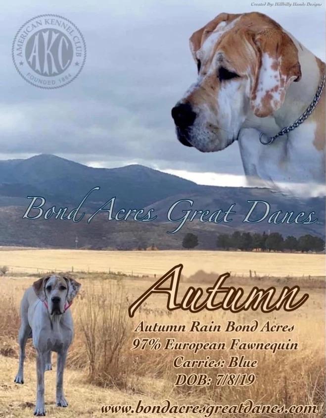 I'm Lacie B., the breeder behind Bond Acres Great Danes located in Georgetown, ID. We take pride in producing healthy and good quality Great Danes. We put our heart and soul into our breeding program.