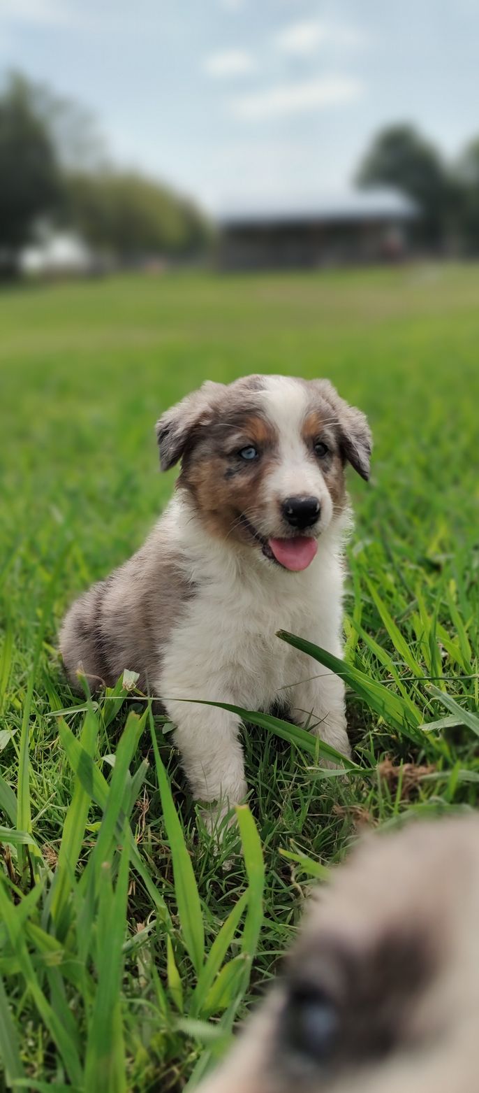 Our puppies include tri-color, blue merle, red merle, black, and sable merle. Colors will vary depending on the parent dogs.