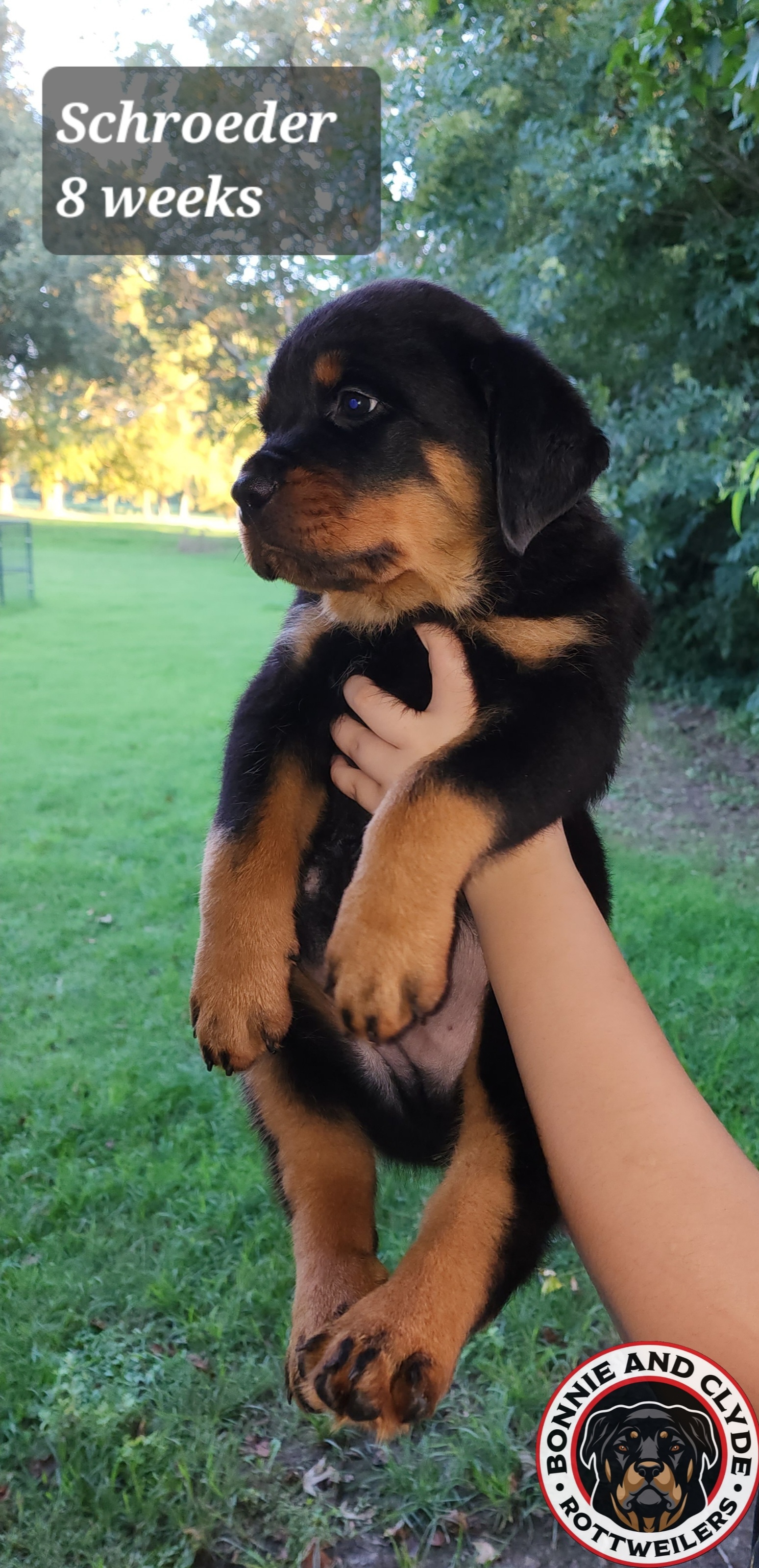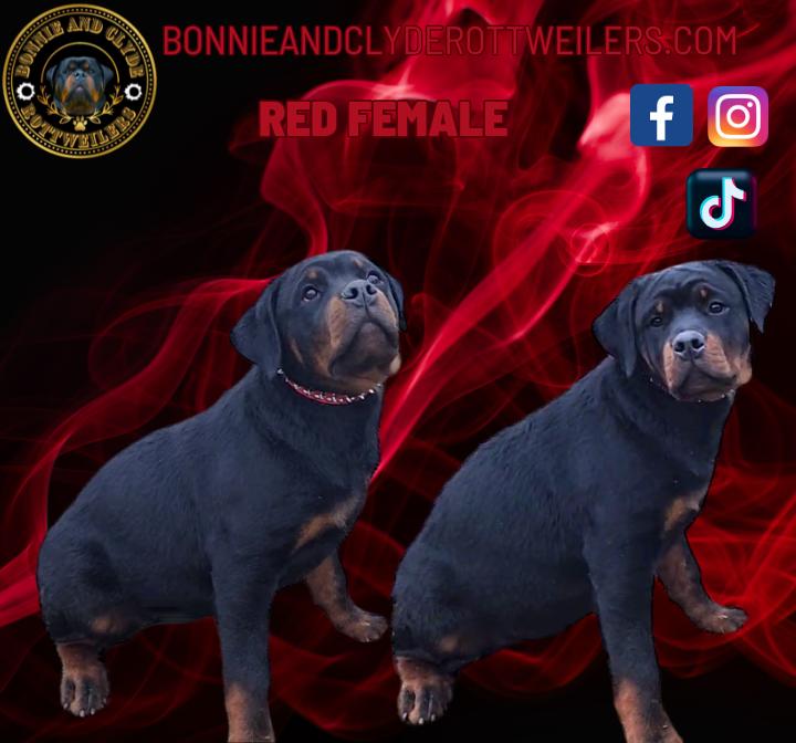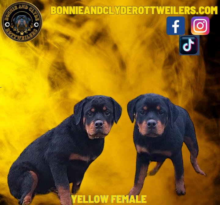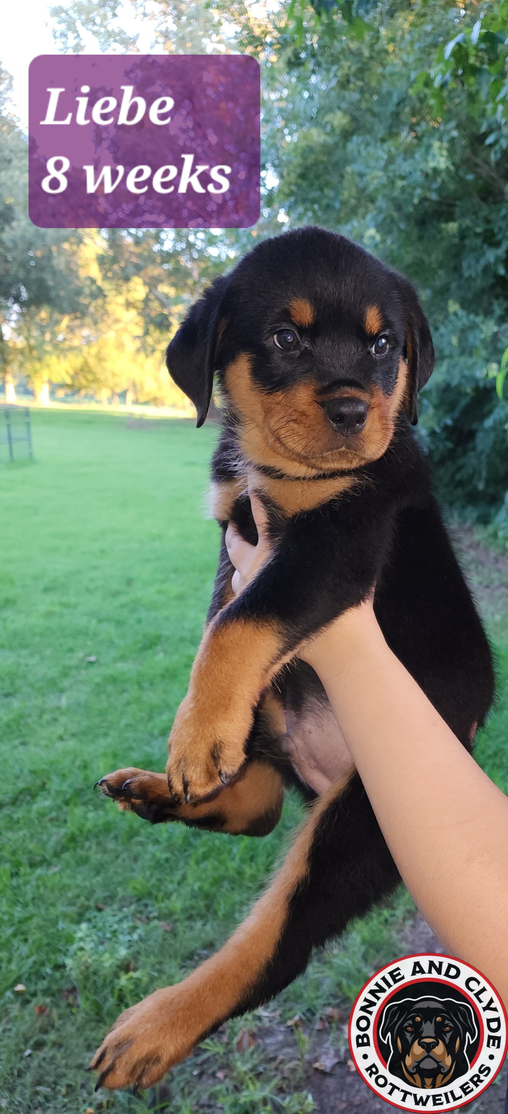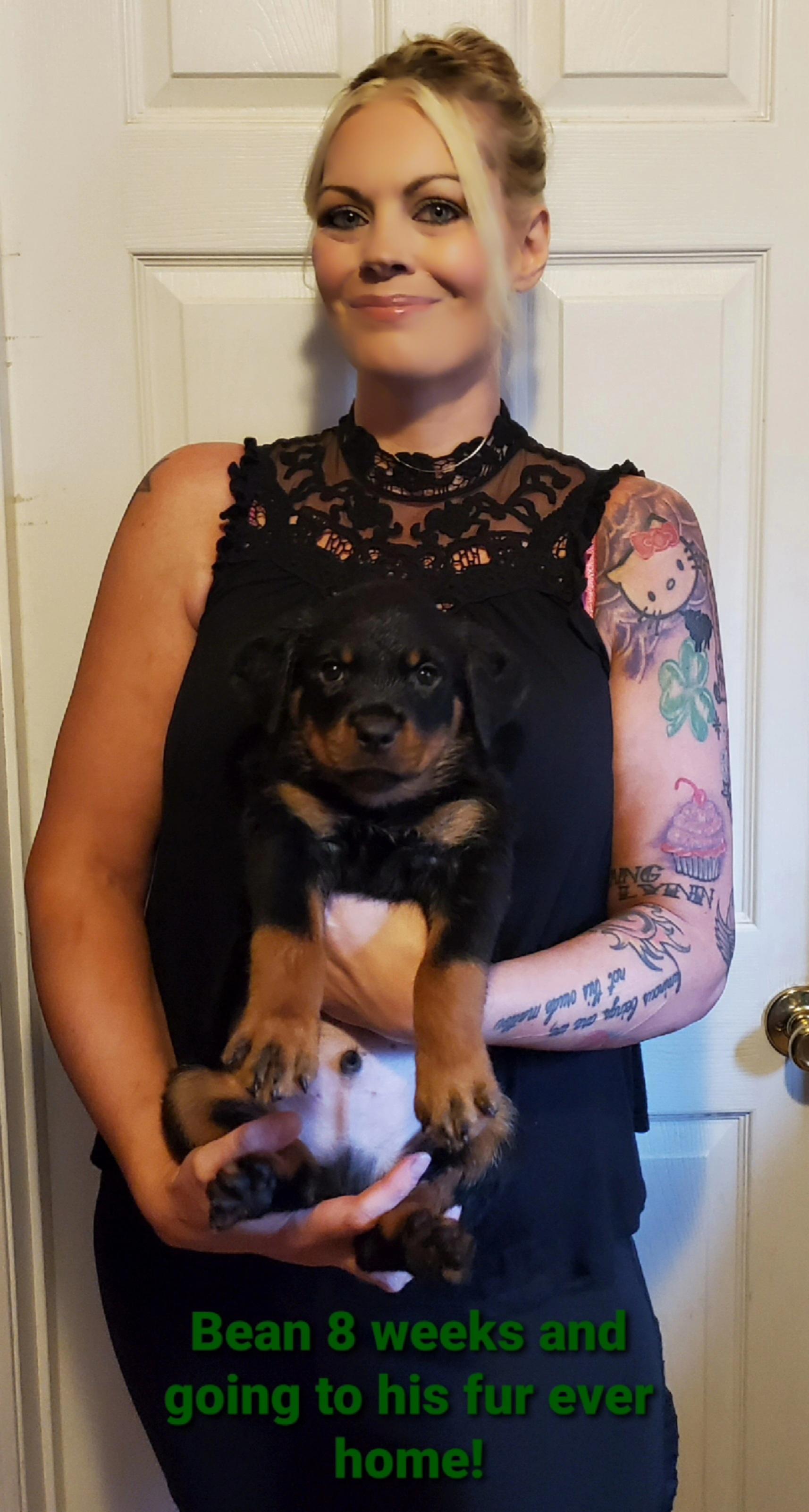 I'm Allayna L., the breeder behind Bonnie and Clyde Rottweilers LLC located in Stanton, TN. Our Rottweilers are off some of Europe's top Championship bloodlines. We offer both Limited AKC registration (pet quality only) or Full AKC registration (confirmation and breeding rights) you can request a docked tail, or natural tail.