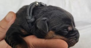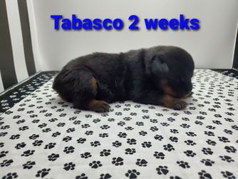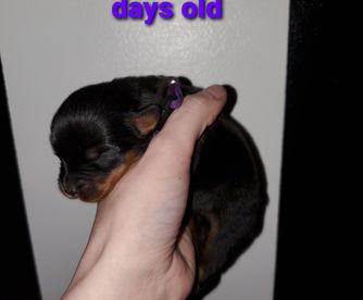 Our puppies include black and tan and black and rust. Colors will vary depending on the parent dogs.