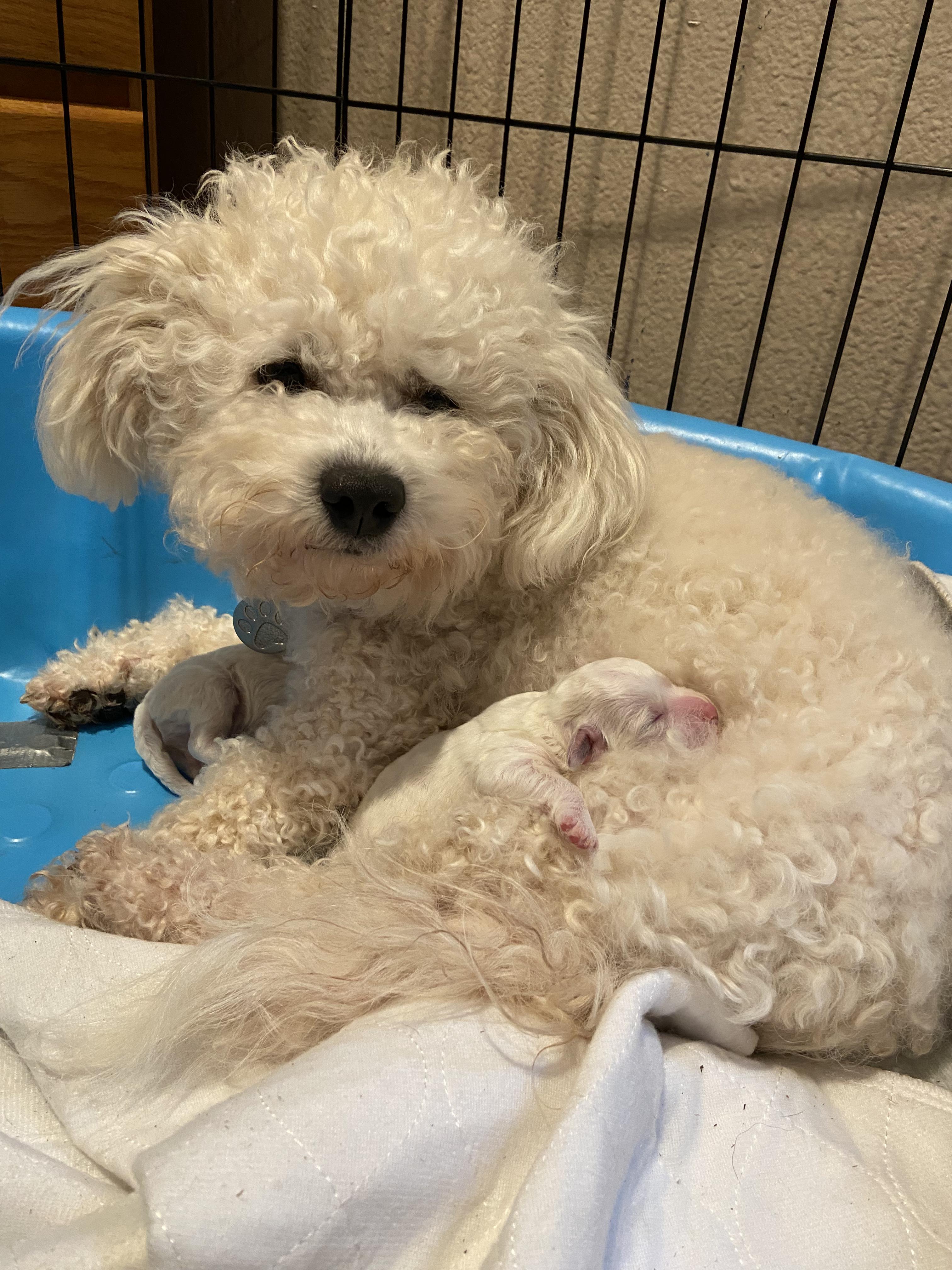 Pearl is a female Bichon Frise. Carefully selected as a great representative of her breed, Bonnie decided to make her part of their program. Bonnie has passed Good Dog’s screening process, which involved a review of their breeding practices, environment, and the mental and physical health of their dogs.