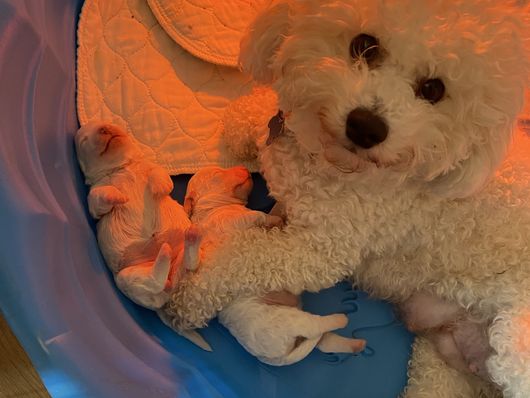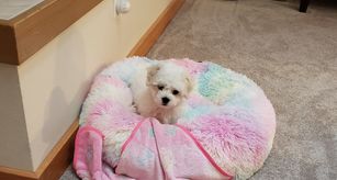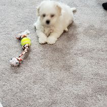Our new bichon frise Coconut ("Coco") is 10 weeks old now, and the last two weeks with her have been a delight! She is smart, sassy, busy, sweet, challenging, affectionate, playful....all of the things a healthy puppy should be! Bonnie was very easy to work with during the process, and I appreciated that she met us north of Vancouver to save us time going back to Seattle! We are satisfied "parents"!
