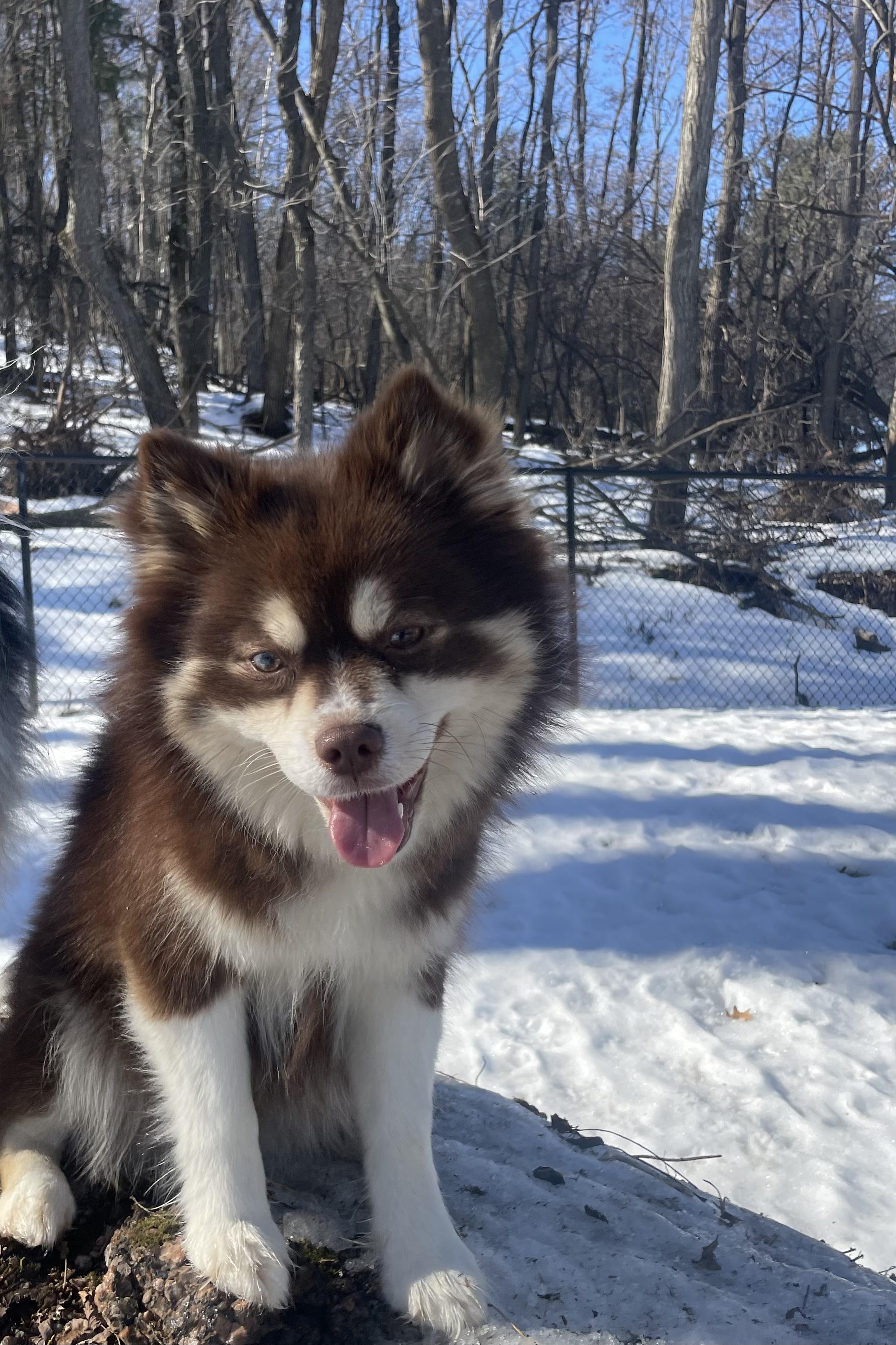 Cocoa is a female Pomsky. Carefully selected as a great representative of her breed, Bonnie decided to make her part of their program. Bonnie has passed Good Dog’s screening process, which involved a review of their breeding practices, environment, and the mental and physical health of their dogs.