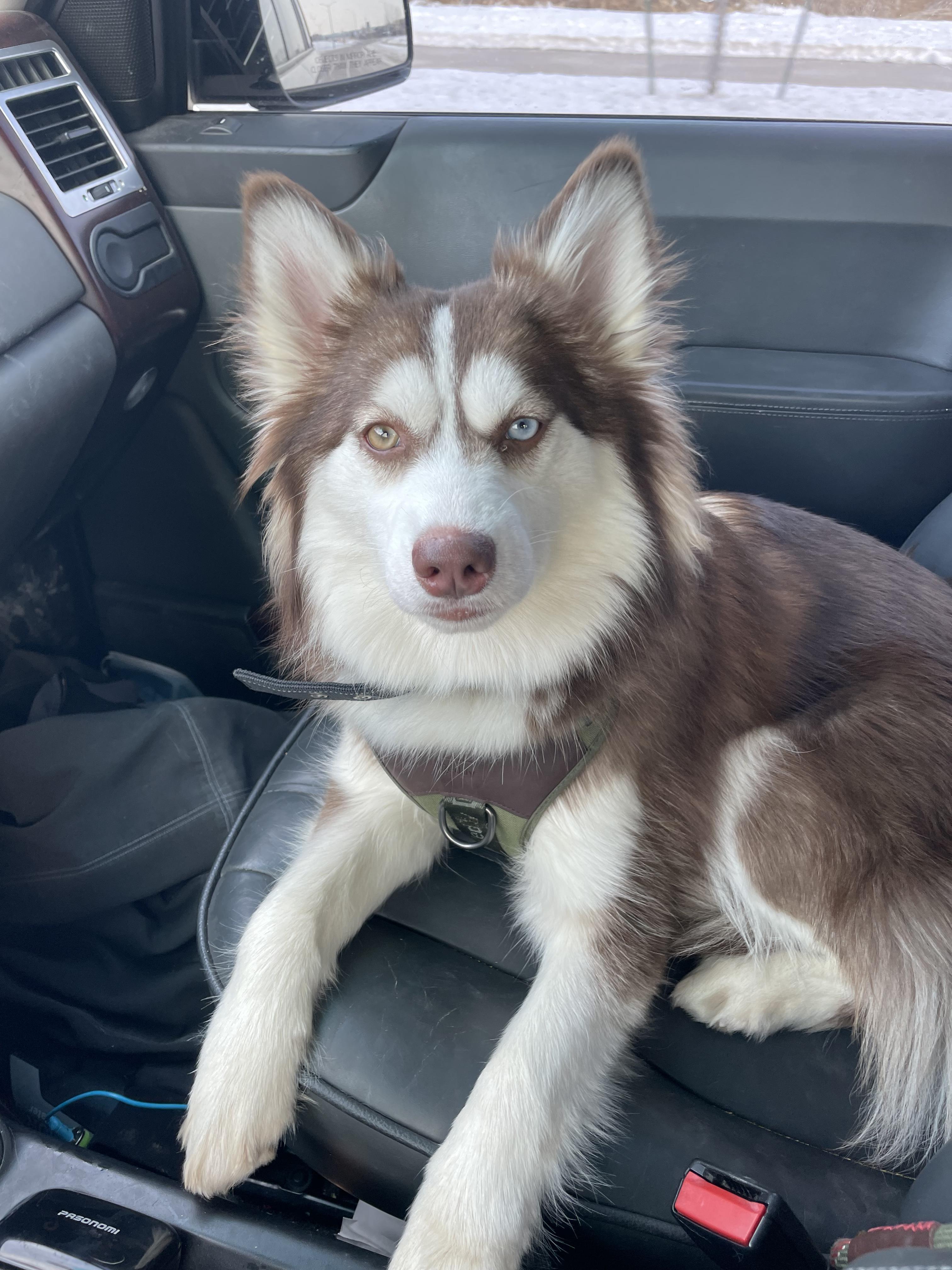 Iris is a female Pomsky. Carefully selected as a great representative of her breed, Bonnie decided to make her part of their program. Bonnie has passed Good Dog’s screening process, which involved a review of their breeding practices, environment, and the mental and physical health of their dogs.