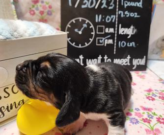 Kimberly was so great throughout this entire process! She answered all of my questions, even the ones I didn't know to ask. The little goodie bag she sent along with our pup was so thoughtful, not only for our new four-legged family member, but also for us. She's fantastic and we loooovvvvve our new puppy! I would highly recommend working with her if you're in the market for a Basset Hound. Thank you again Kim!!