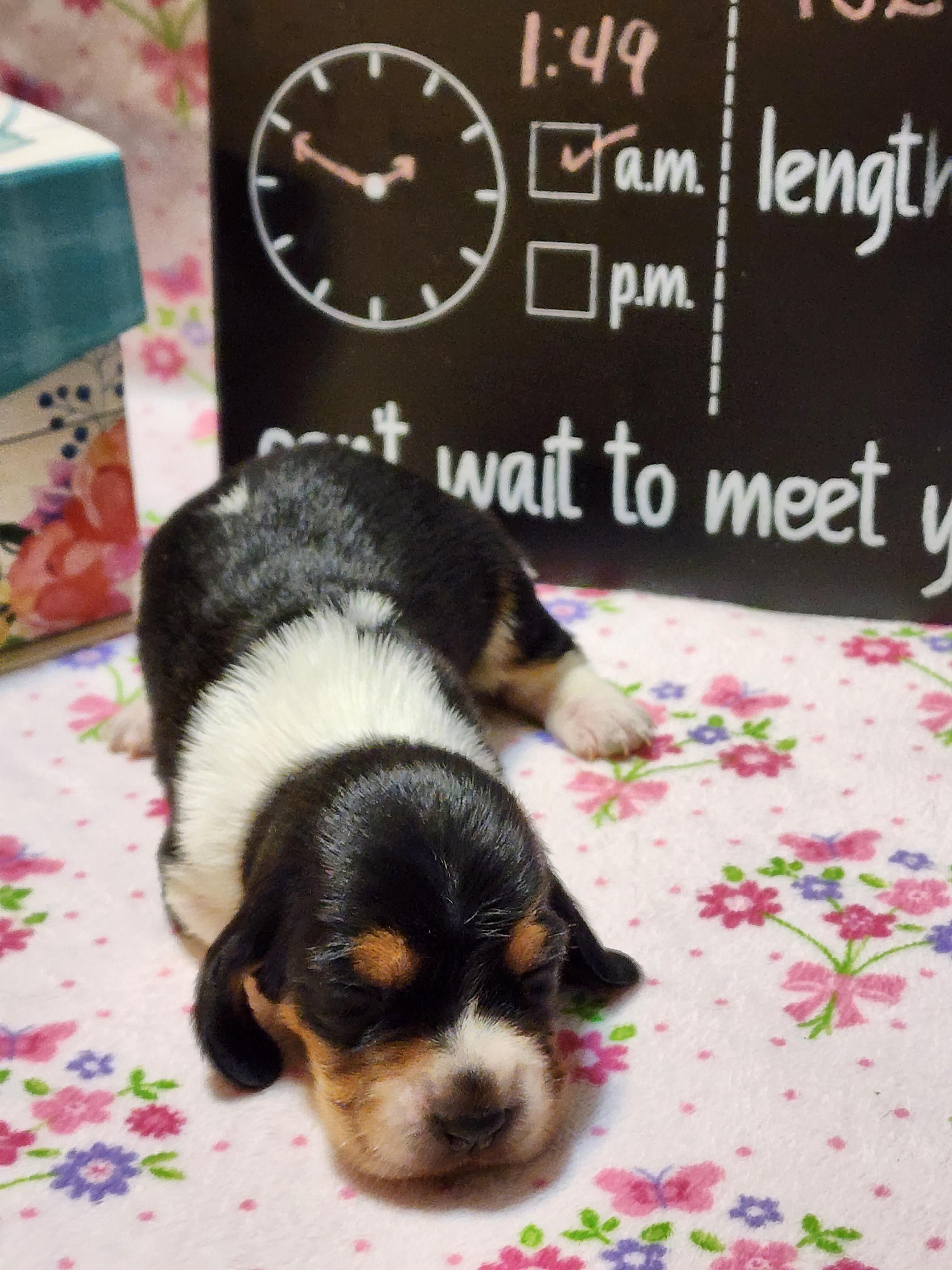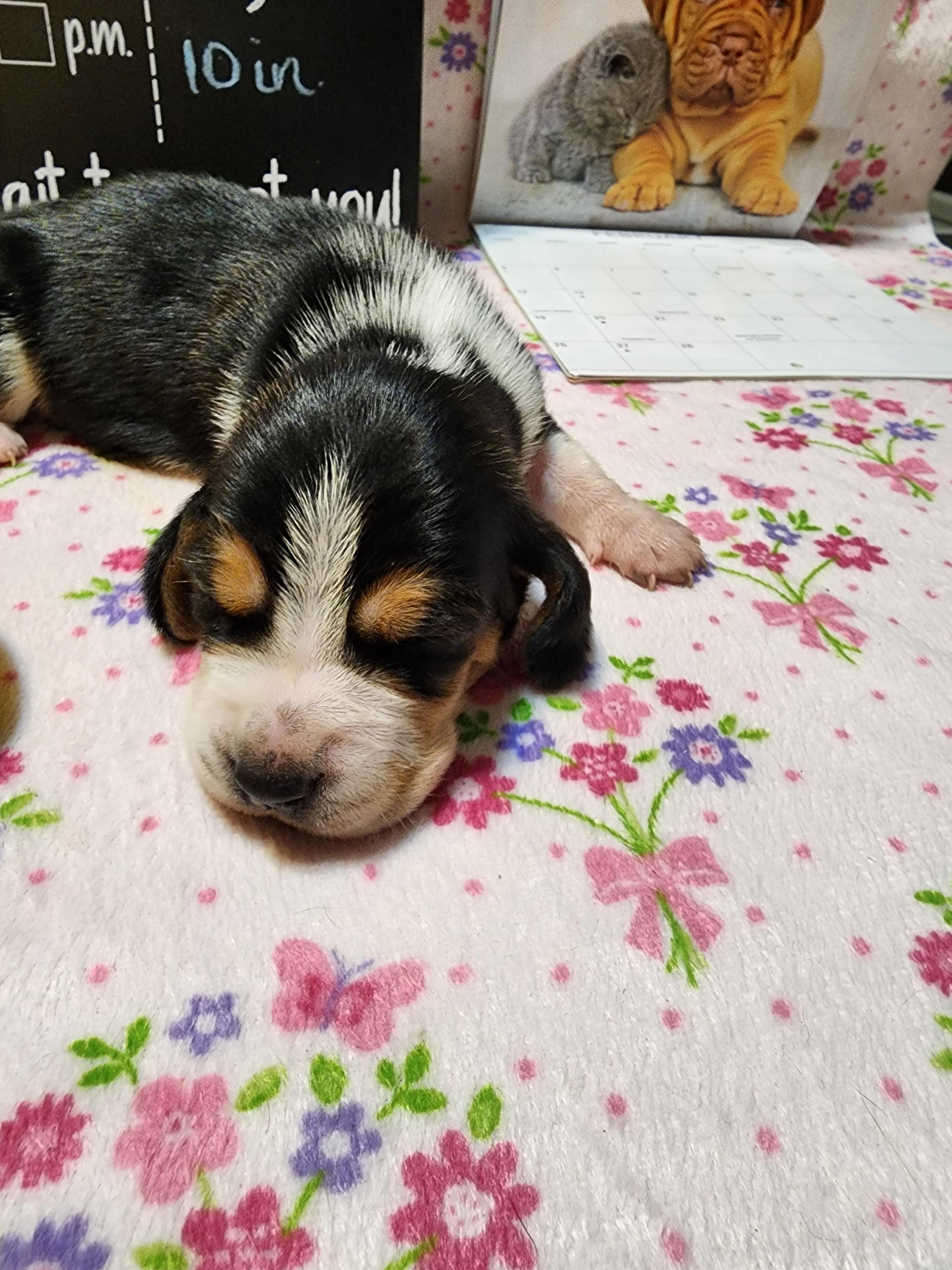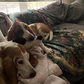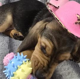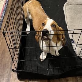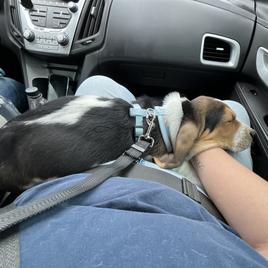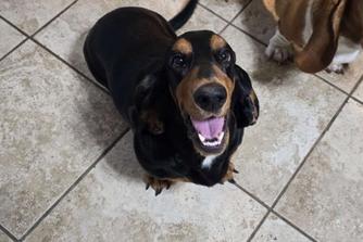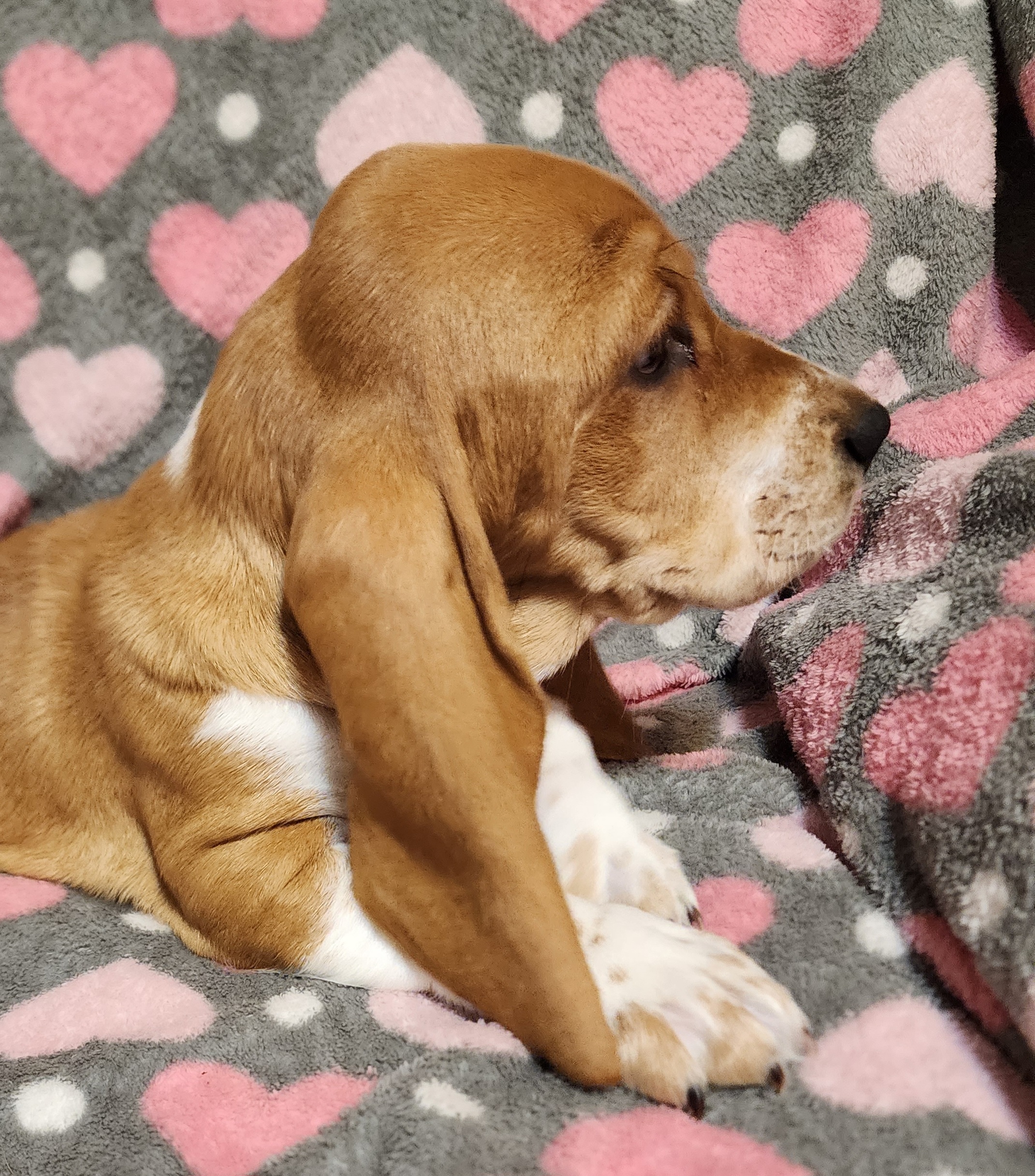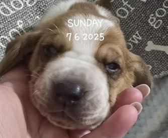 Very fun and playful, but also loves to cuddle. Has a big personality! On the smaller side for a basset hound. Produces great pet offspring for loving family.