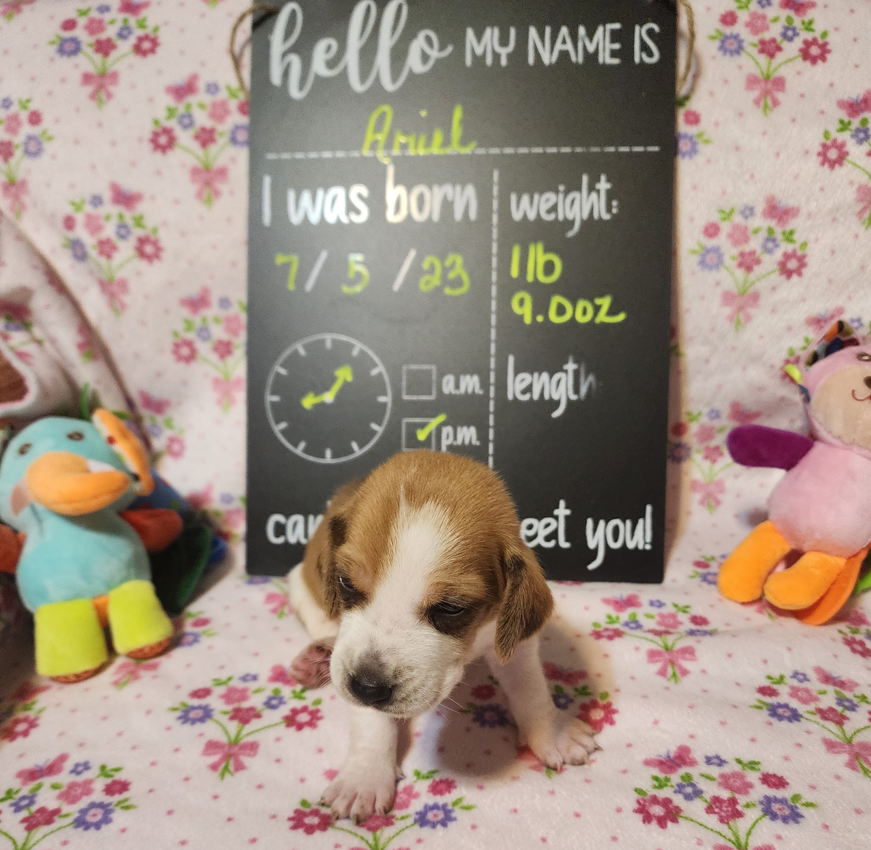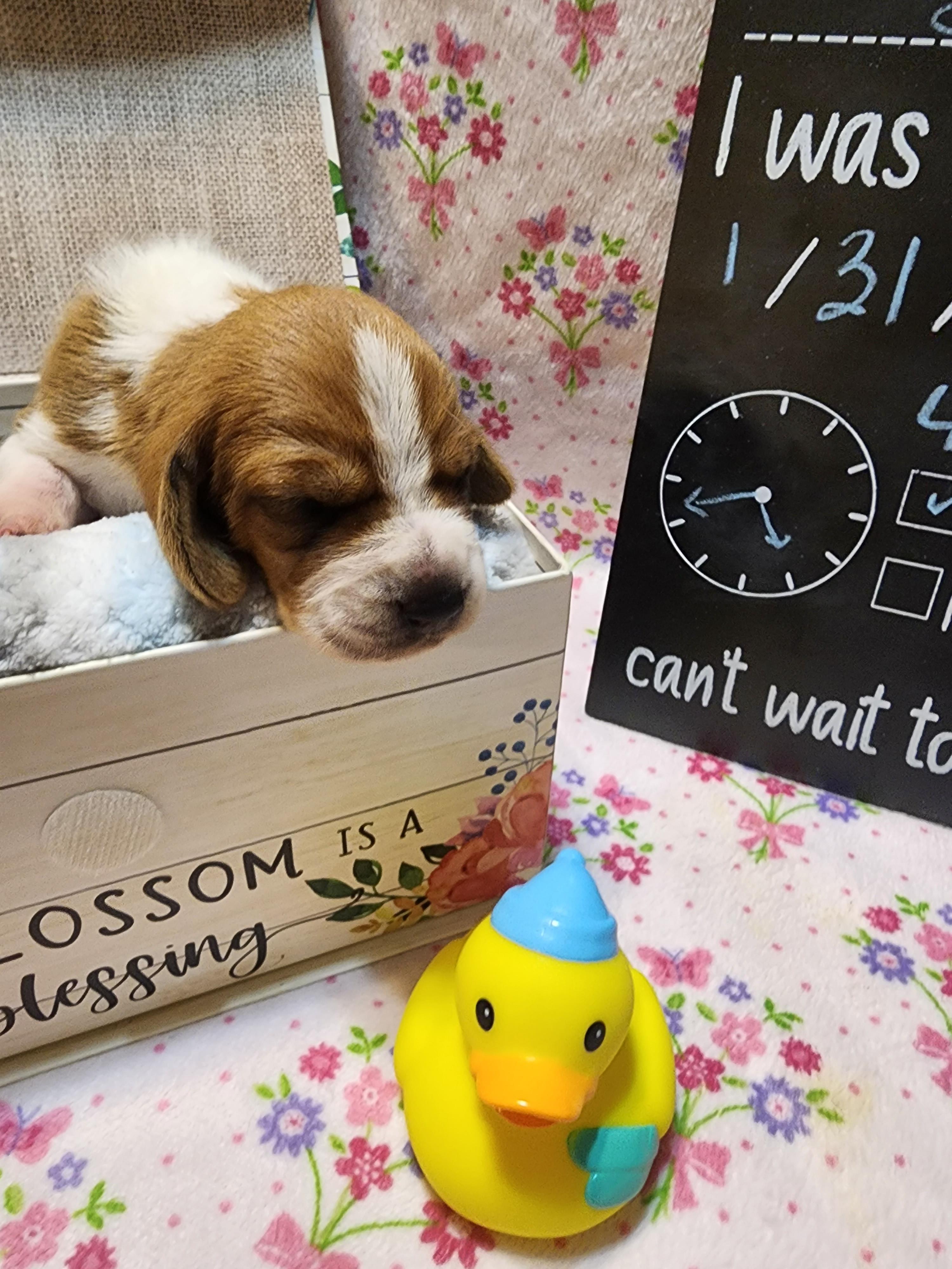 Our puppies include mahogany and white, black and brown, tan and white, brown and white, red and white, and black brown and white. Colors will vary depending on the parent dogs.