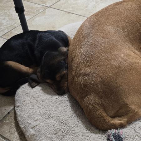 Grandma Peaches and our last lone puppy Glazed taking a nap together.. so sweet.