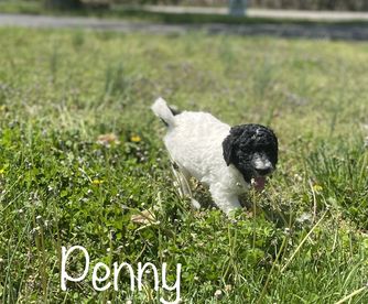 CKC registered standard parti female Maxine is the light of my life Maxine is one of the best dogs I have ever owned in my life she would follow me to the ends of the earth she follows me wherever I go she listens impeccably and that's what she's told very quickly very quick learner