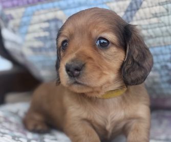 Our Dachshund puppies have longhaired coats. Coat types may vary depending on the parent dogs.
