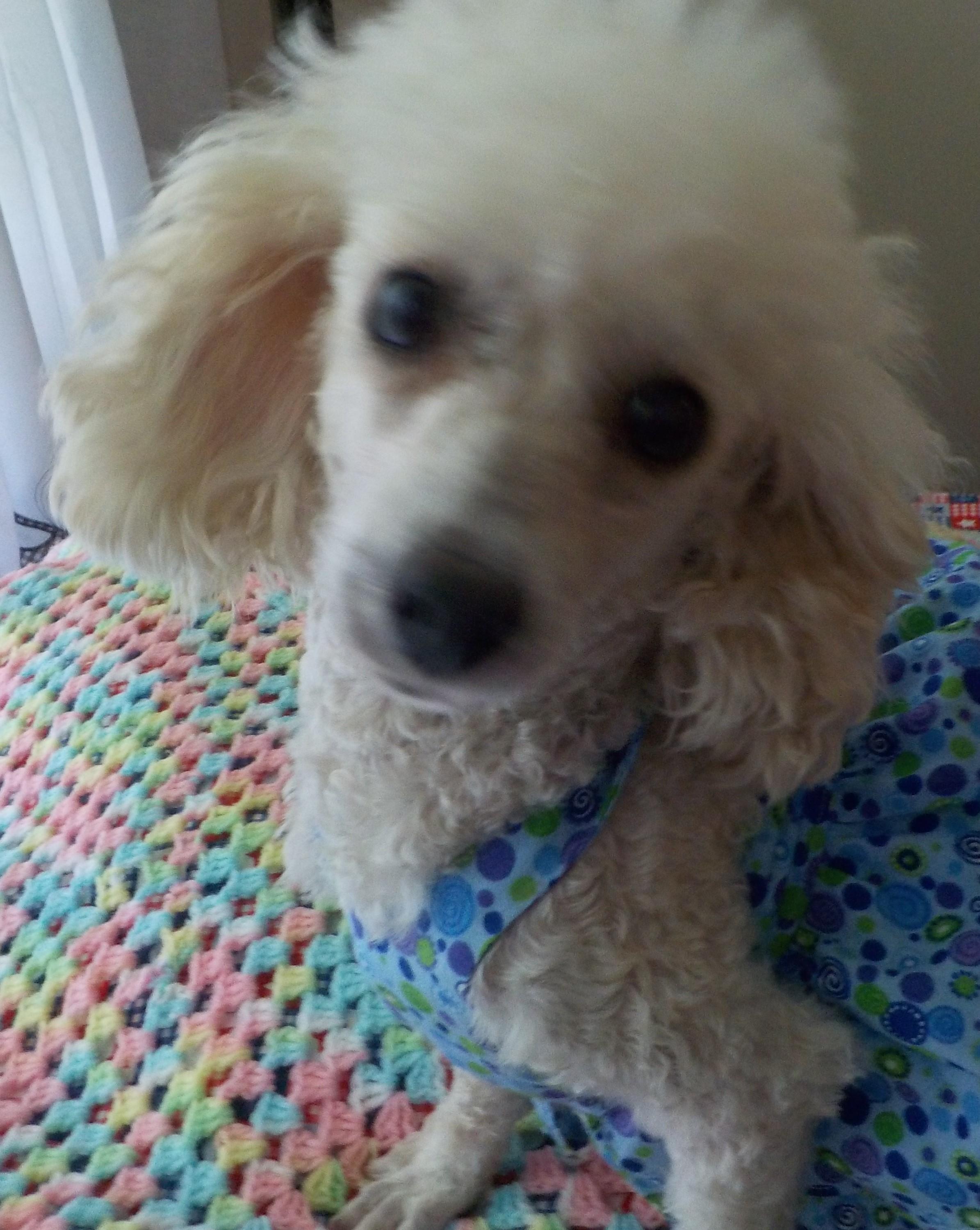 This is a friendly loving little guy. He makes no waves and gets along with everyone. His coat is dark brown and he has not faded from his puppy color. He is so easy to groom and thinks he is very handsome when finished...prances and wants everyone to look at him.