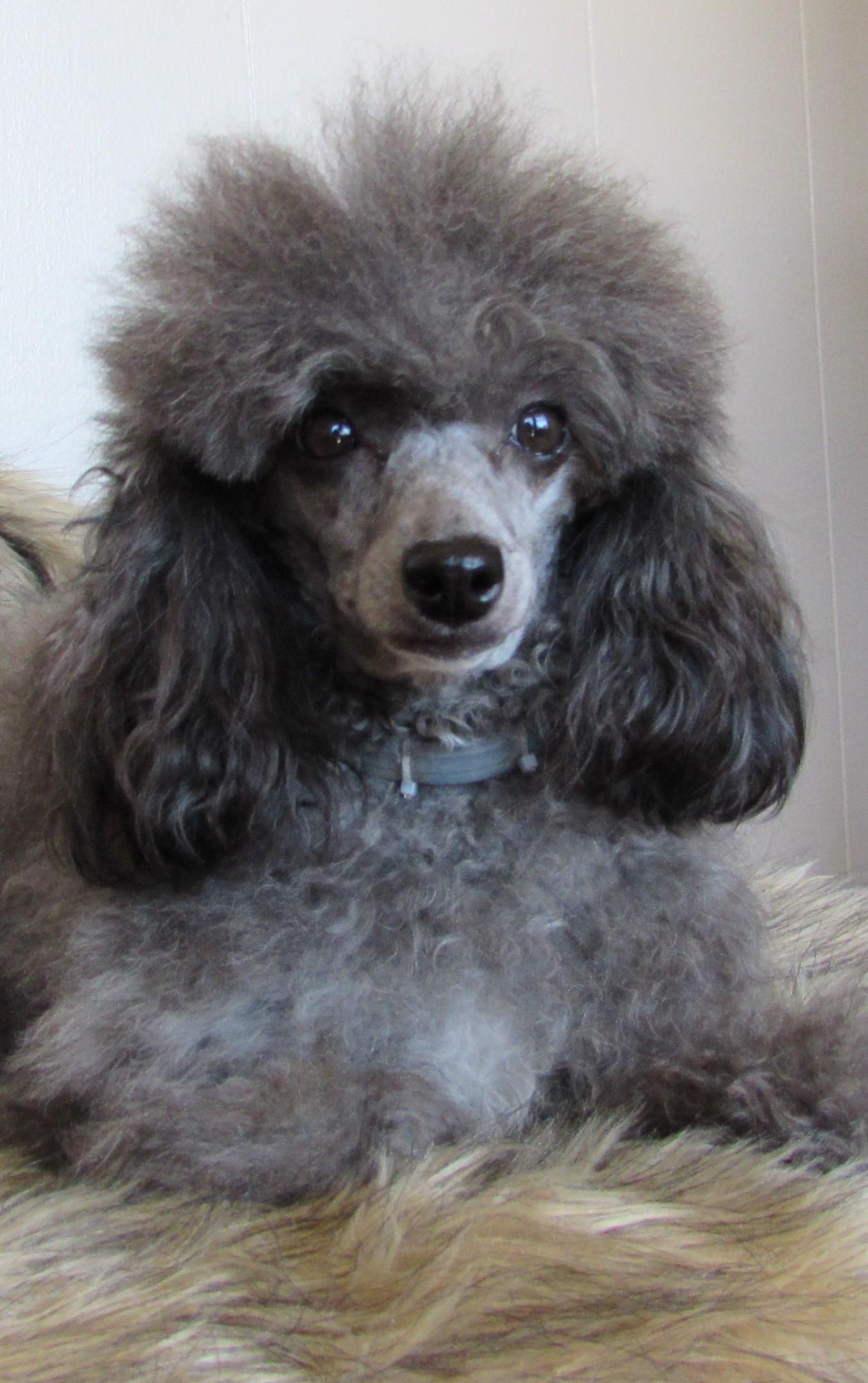 Gretchen is an active Poodle who loves the outdoors. I have walnut trees at the back of my yard, where she spends many hours watching for and chasing squirrels. She barks when she trees one! She is a great Mom and chooses only her closest dog friends to view her litter.