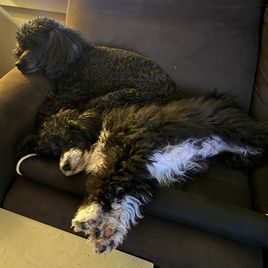 When our first mini poodle was four years old, we decided she needed a companion. Our second was about eight months old when we acquired him. Since then, we have always had two poodles, one adult and one pup.