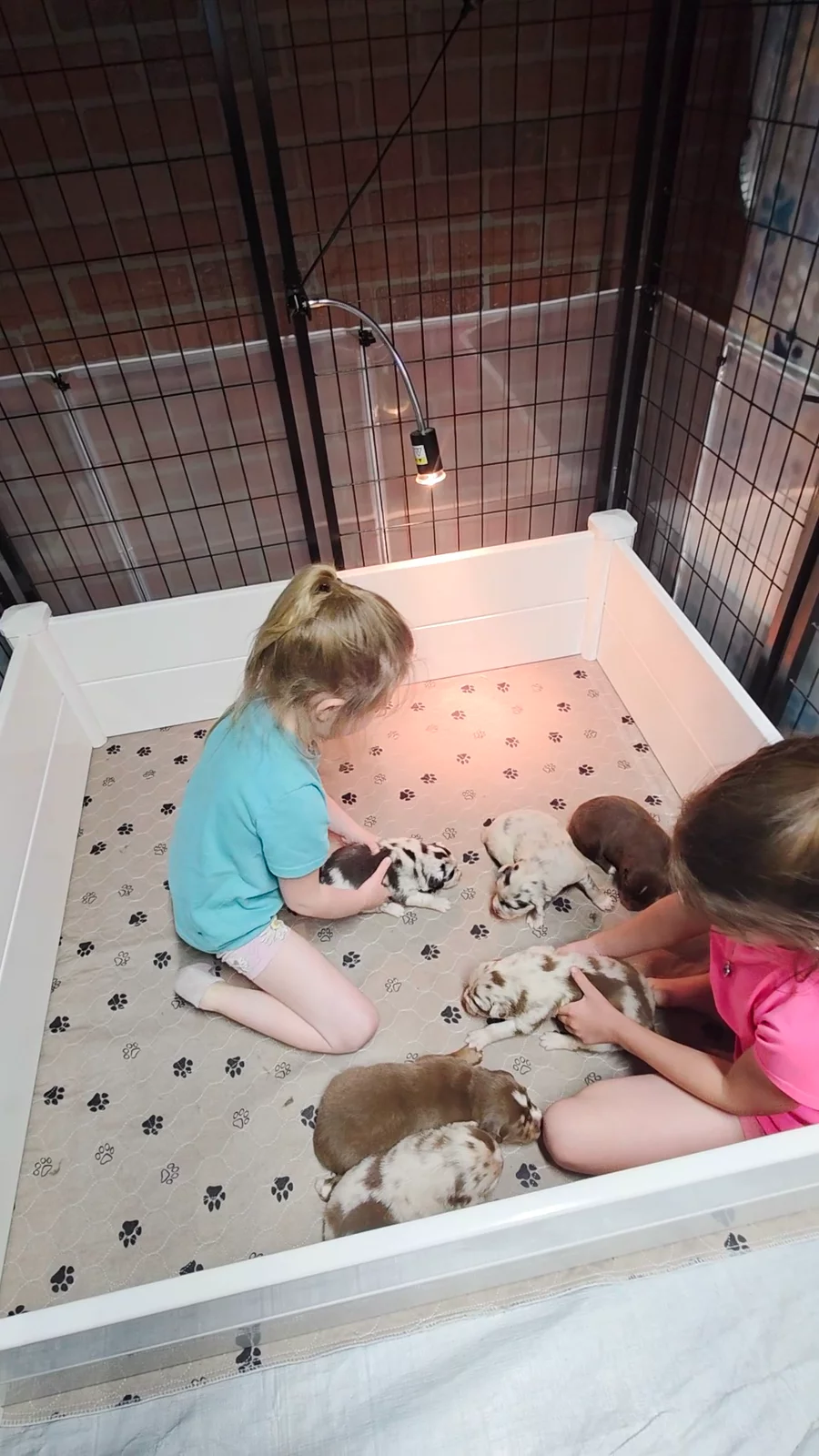 Our puppies include black, red merle, blue merle, and red tri-color. Colors will vary depending on the parent dogs.