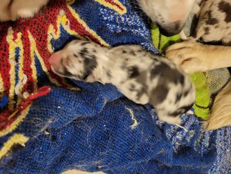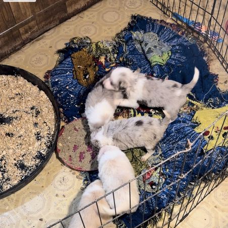 Our puppies include lilac merle, blue merle, black, red, white and blue, white and blue merle, seal, and slate. Colors will vary depending on the parent dogs.