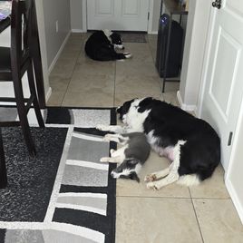 Border Hollow and Tommy are the only breeder I will get a pup from. All 3 of my girls are happy, healthy, funny and well socialized. As you can see the newest addition fits right in and loves to play and snuggle. She herds and plays ball. Smart, learned lay and sit and to sit pretty for treats in a matter of minutes. House broke and only 10 weeks old. Thank you Tommy for my sweet girls.