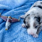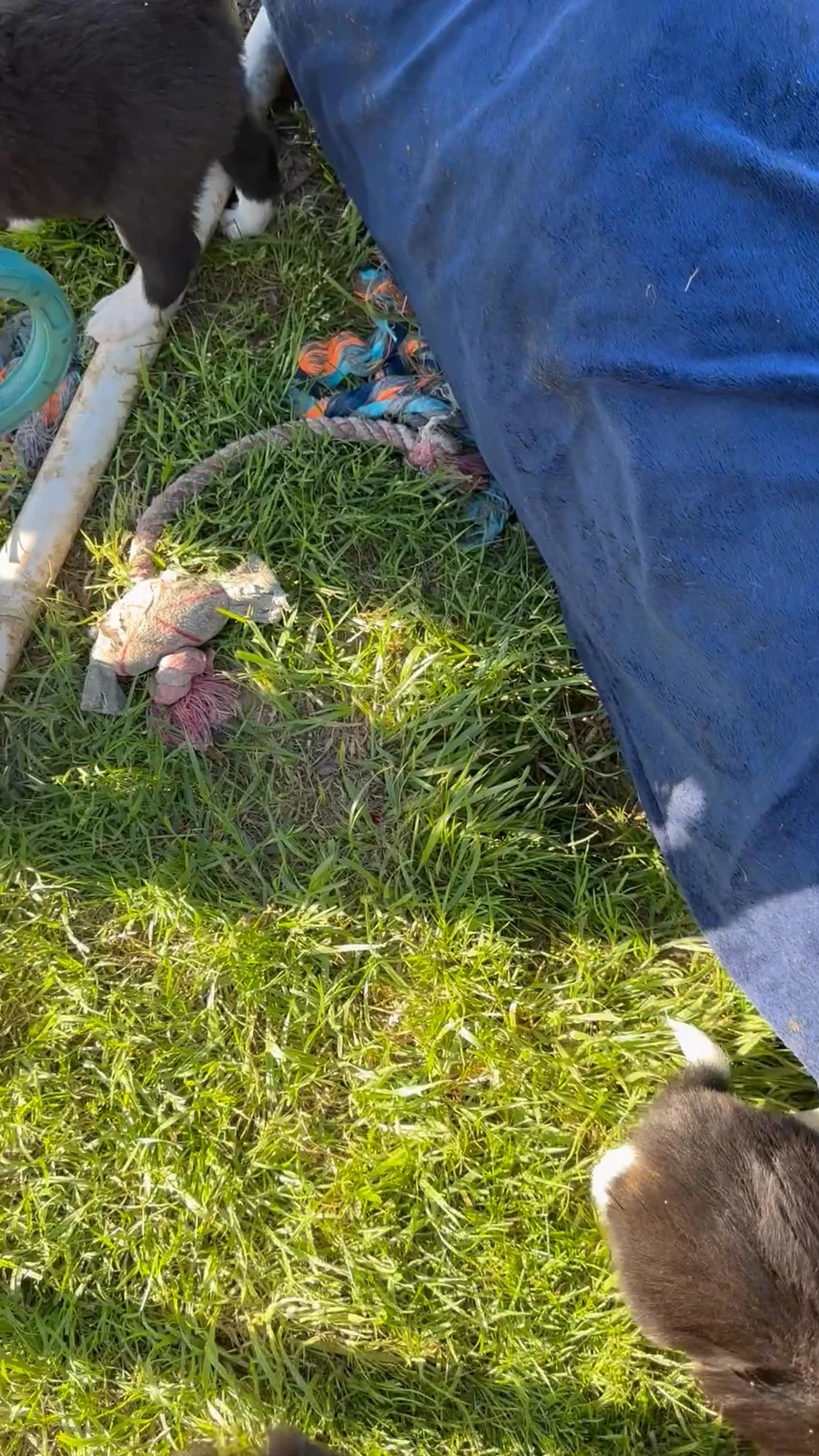 At seven weeks today all of the Marvel litter has found their forever homes except Thor. While the others will be excited to meet their new families and leave soon …Thor enjoys his time romping with his littermates and has definitely gotten proficient in the border collie stalk. He absolutely loves tugs and empty water bottles and the crackle sound they make.