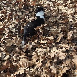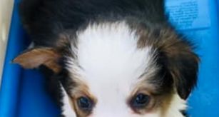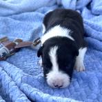 Black and white, AKC and full panel clear on all genetic testing. Carries dilute and ee red and when matched with Kai produces black and white, Tri, Saddleback and Gold and white puppies.