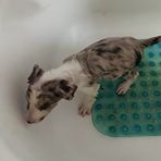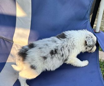 Blue Merle female, ABCA registered and clear on all genetic testing except is a carrier for EOD. Carries dilute.