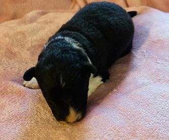 Blue Tri Saddleback. Dual Registered ABCA and AKC. ky/ky and full panel clear on all genetic testing.
