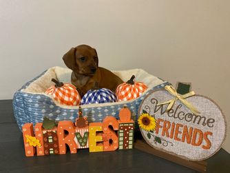 I'm Laken B., the breeder behind Bosley's Dachshunds located in Davisville, WV. We’re so excited to be able to help families experience the longtime loyalty of welcoming a new puppy into their lives! Our love for our dogs pushed us to begin breeding. We love to see the results of our efforts in the sweet, happy, and healthy puppies that we’re able to share with others.
