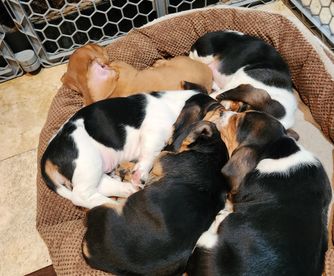 3 weeks old today, ears are growing, eyes are open and they are all walking. Next week they will be playing