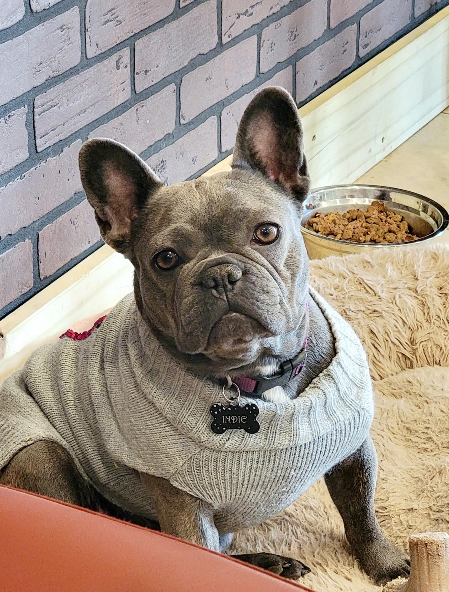 Indi is a female French Bulldog. Carefully selected as a great representative of her breed, Danielle decided to make her part of their program. Danielle has passed Good Dog’s screening process, which involved a review of their breeding practices, environment, and the mental and physical health of their dogs.