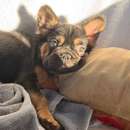 Victoria is sweet and snuggly French Bulldog that is the definition of a little lovebug. With her affectionate personality, gentle nature, and constant desire to be near her people, she wins hearts wherever she goes. She’s the perfect mix of cuddly companion and playful sidekick, always ready to give kisses, nap in your lap, or follow you from room to room with those big, adoring eyes.