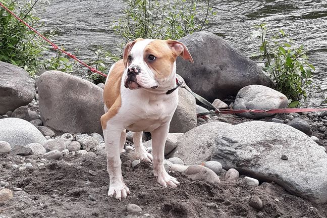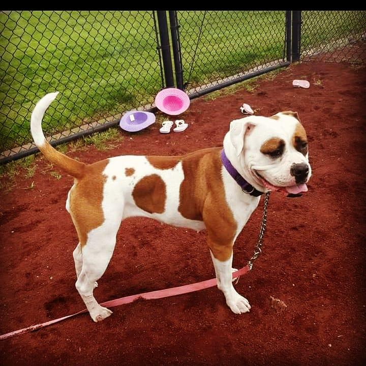 Daisy is a female American Bulldog. Carefully selected as a great representative of her breed, Rachelle decided to make her part of their program. Rachelle has passed Good Dog’s screening process, which involved a review of their breeding practices, environment, and the mental and physical health of their dogs.
