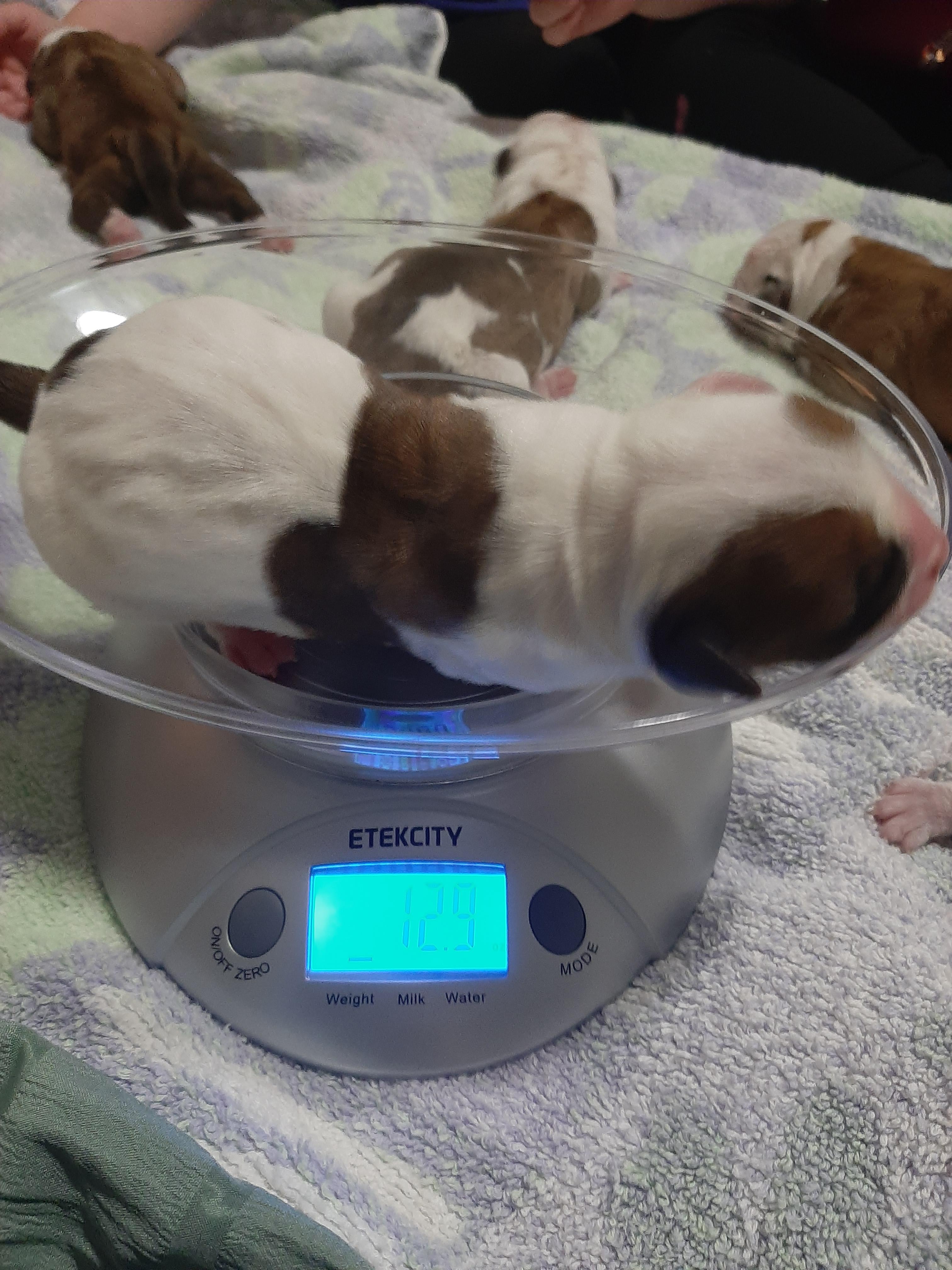 “Our prices are set for many reasons, but one being that Daisy requires c-sections, which is a large expense. However, it allows for each puppy to be health checked by a vet at birth to check for deformities or any health issues. Our puppies are pedigreed through NKC and we are considering dual registering them to ABA as we are licensed with each. Our dogs are health checked before breeding also. Each puppy has received two rounds of worming and one to two series of puppy shots when they go to their new homes. They each come with their pedigrees and registration papers as well as birth certificates, puppy introductions, food and little packages. If the puppies are reserved or picked early, the families will receive new pictures and updates often before the puppies come home. Pet puppies are required to be spayed/neutered and will be sold at the lower price. Show/brood stock will be sold at the higher price and with breeding rights.”