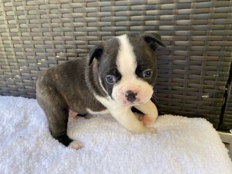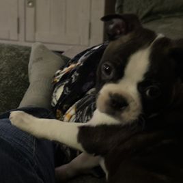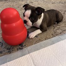 Words can't express how devastated I was losing my previous Boston, Bennett. While searching for a breeder to bring a new puppy home, I came across Boston Kup Breeders. It was a pleasure working with Juile. She was willing to meet up and allowed me to meet my puppy Luke (previously Finn) before deciding that he was the baby I'd bring home. She was also very quick and responsive with any questions and requests. Getting the weekly photos and updates made each week special too!