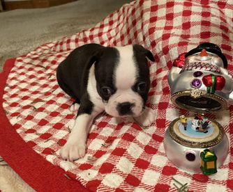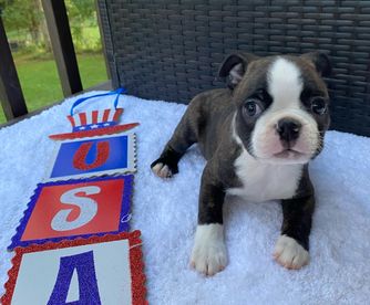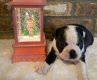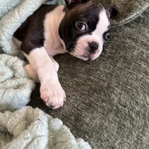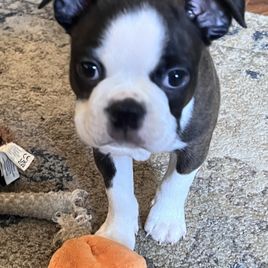 I am so impressed with my new puppy, Jameson. He aced his first vet visit, 48 hours after pickup from Julie. Once I contacted Julie about her litter, and placed a deposit on Jameson, I received updates and photos of my little guy. He’s a wonderful puppy - smart, healthy, and a well-behaved little guy. He’s fit right into the family, like he’s always been here. Jameson is a going to be a great ambassador to the Boston Terrier breed and his breeder!