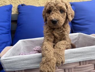 Boston is a male Poodle. Carefully selected as a great representative of his breed, Cristina decided to make him part of their program. Cristina has passed Good Dog’s screening process, which involved a review of their breeding practices, environment, and the mental and physical health of their dogs.