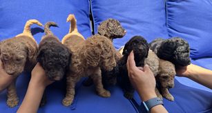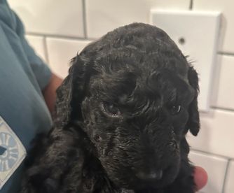 Dad chocolate poodle he’s 65 lbs