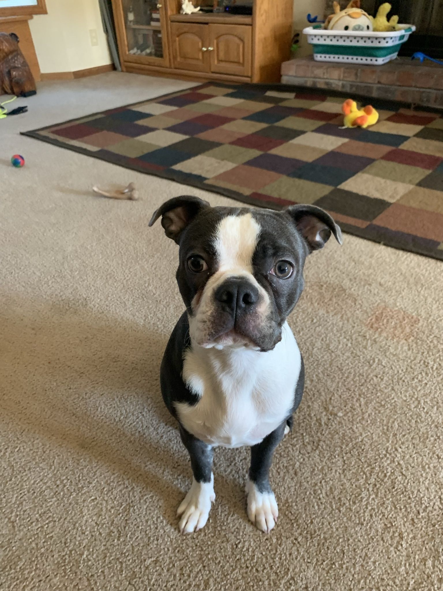 Loki is a female Boston Terrier. Carefully selected as a great representative of her breed, Betty decided to make her part of their program. Betty has passed Good Dog’s screening process, which involved a review of their breeding practices, environment, and the mental and physical health of their dogs.