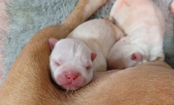 Our puppies are black brindle and white. Colors will vary depending on the parent dogs.
