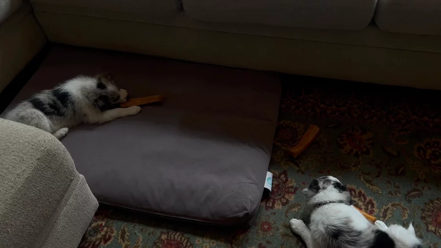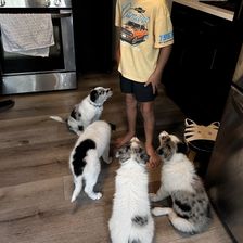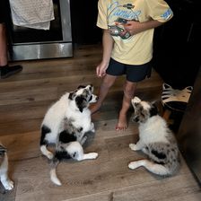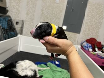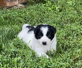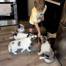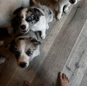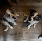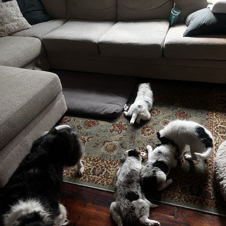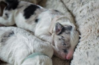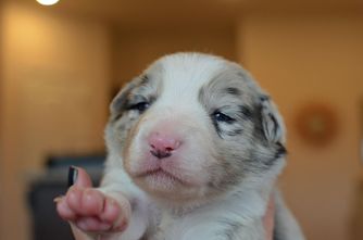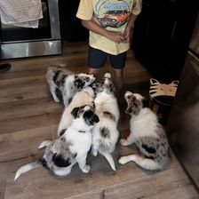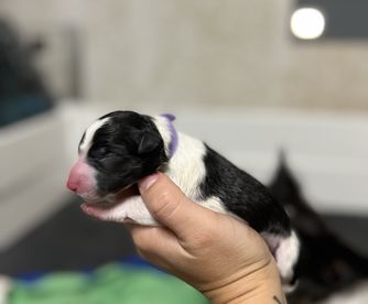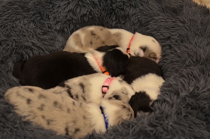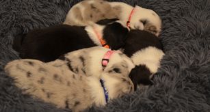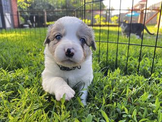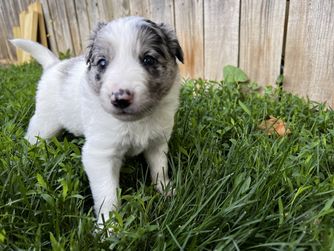 Our puppies include tri-color, black and white, and blue merle. Colors will vary depending on the parent dogs.
